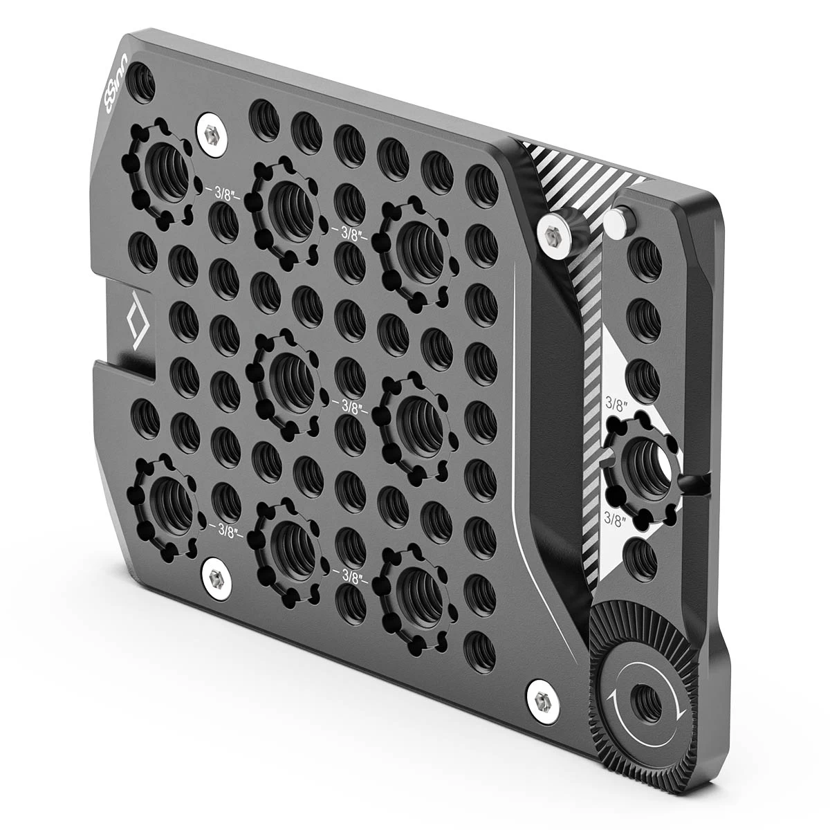 For even greater flexibility, the side plate is equipped with 3/8″ threaded openings, complemented by Arri locating points. This feature is particularly beneficial for professionals using Arri-standard accessories, which are known for their precision and durability. The Arri locating points provide an anti-twist mechanism, ensuring that attached accessories remain securely in place during operation.