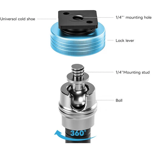 The 7″ IRONMAN Cine Magic Articulating Arm from DigitalFoto Solution Limited simplifies adding fill lights or secondary monitors to your camera rig, thanks to its versatile dual ball head design. It features a 1/4″-20 thumbscrew on one side and a cold shoe mount with a 1/4″-20 thread on the other. For added flexibility, the cold shoe can be removed to expose another 1/4″-20 screw, expanding your mounting options. Built to handle loads up to 13.2 lb, this durable stainless steel arm is capable of supporting a wide range of accessories.