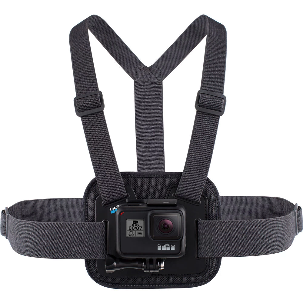 The GoPro Chesty is a high-performance chest mount designed with padding for enhanced stability and comfort. Built from breathable materials, it is compatible with the GoPro HERO10, HERO11, and HERO12. Equipped with a standard 3-prong mount, the Chesty lets you capture hands-free POV footage during activities like skiing, motorcycling, or other action-packed adventures. Additionally, it supports the GoPro Karma Grip, which can be attached using the Mounting Ring included with the Karma Grip. The Chesty is fully adjustable to accommodate various body sizes or to fit comfortably over bulky winter clothing. It features a quick-release buckle that is glove-friendly, ensuring easy handling even in cold conditions.