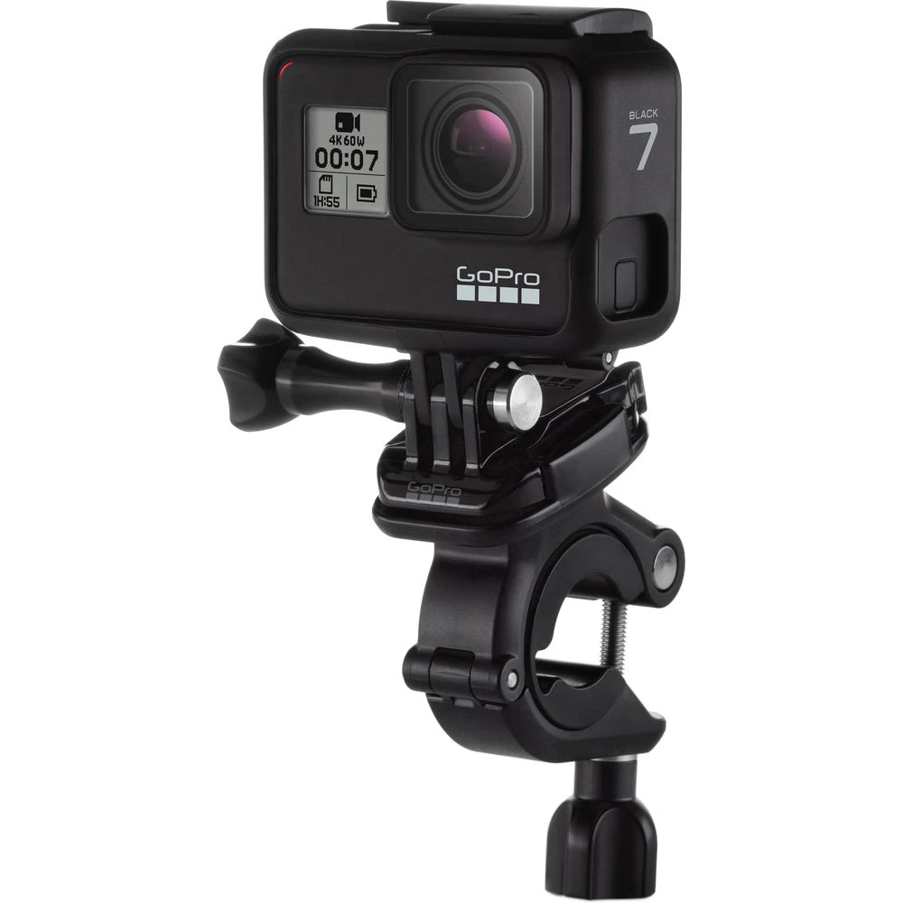 The GoPro Handlebar/Seatpost/Pole Mount is now compatible with the mounting buckle, allowing you to quickly secure your camera to tubes measuring 0.35 to 1.4 inches in diameter. It includes two rubber inserts that provide a snug fit while reducing vibrations from rough trails or impacts. Once attached, the mount enables 360° camera rotation for accurate framing, with sixteen position detents ensuring stability in any orientation.