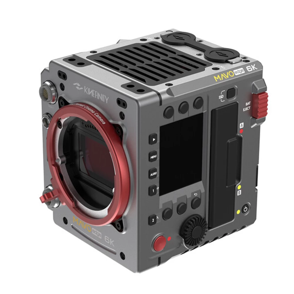 The compact camera body of the MAVO Edge 6K only weighs 1.6kg(3.6lbs), and it is equipped with a full-spectrum e-ND filter, dual SDI ports, multiple control ports, and multi-channel audio tracks, as well as powerful wired and wireless functions. The monitoring image from two proprietary video ports is independently displayed from SDI outputs at the rear. The video ports can be connected to the Kinefinity touchscreen monitor and micro-OLED viewfinder.