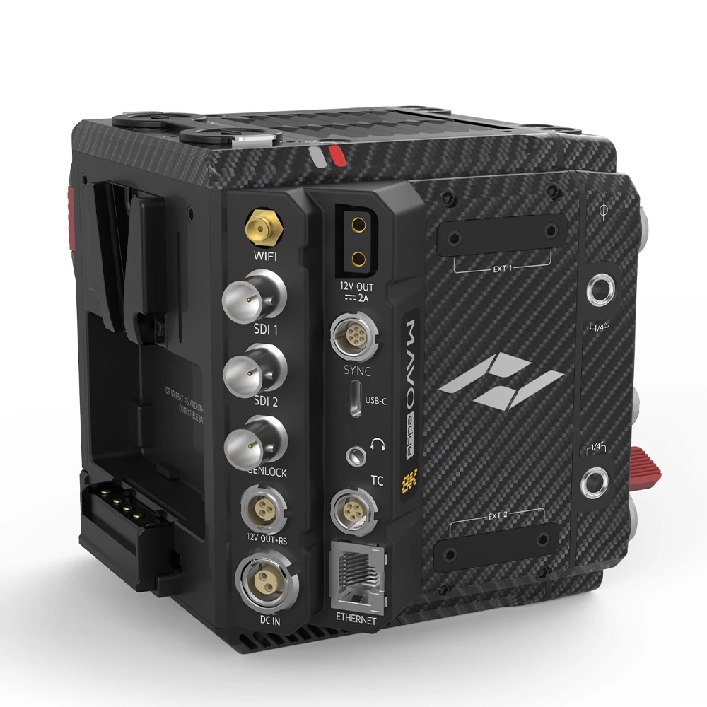 MAVO Edge’s body offers standard a D-Tap port, 12V RS port and Lens port (12V) to power the third-party accessories like wireless video transmitter and wireless lens motor directly. These ports eliminate the need for extra batteries or power converters thus streamlining the camera setup and improving the system stability.