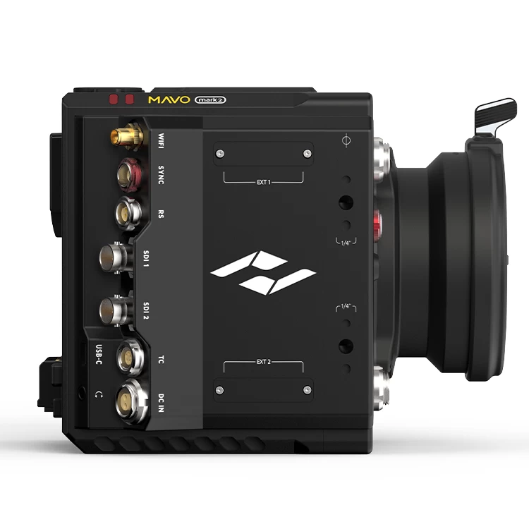 MAVO mark2 inherits the integrated body design of MAVO Edge camera which has won the prestigious iF DESIGN AWARD 2021. The compact camera body of the MAVO mark2 only weighs 1.46kg(3.21lbs), and it is equipped with dual SDI ports transferring metadata, general sync and control ports, and multi-channel audio recording.. It is also provided with dedicated timecode sync ports, an RS232 protocol port for communicating with and controlling third-party accessories, and an RS port for powering and triggering an external record function. As for power solution, MAVO mark2 offers an innovative hybrid battery plate that supports standard 14.8V V-mount batteries and small BP-U type batteries.