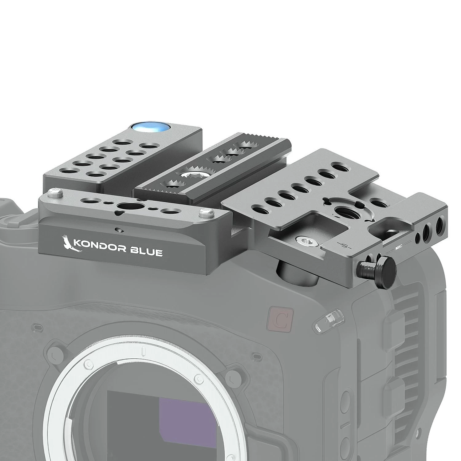 - Top Plate: Dual NATO Rails, Bubble Level, 1/4″-20 and ARRI 3/8″-16 Threads, Dual Cold Shoes, Magnetic Tool, Relocated Sensor Plane Marker, Compatible with Original Canon Top Handle and Mic Mount