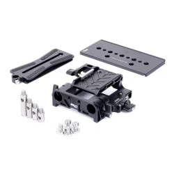 This MID49 Base Kit is designed exclusively for the Sony BURANO (camera not included) and includes a range of accessories to enhance on-set usability. The single 15mm rod clamp attaches seamlessly to the Arca Top Handle, supporting Sony’s BURANO EVF system or lens motors in a compact, efficient configuration. The kit features a quick-release 15mm LW baseplate with an Arca-Swiss camera dovetail interface on top and an ARRI standard dovetail interface on the bottom for versatile mounting options.