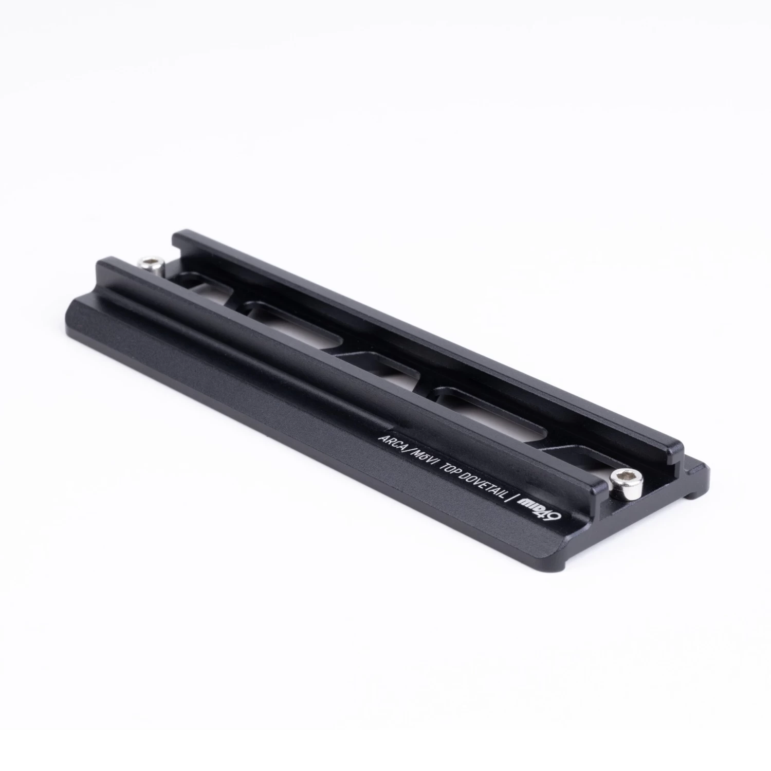 The MID49 Gimbal Top Arca-Type Adapter is designed for use with the FREEFLY MōVI Pro. It connects to Arca-type top mounts, offering a dovetail interface. Easy to install and remove, the sliding Arca-type interface enables tool-free balancing adjustments on a fixed cheese plate, simplifying the setup and accelerating your shoot.