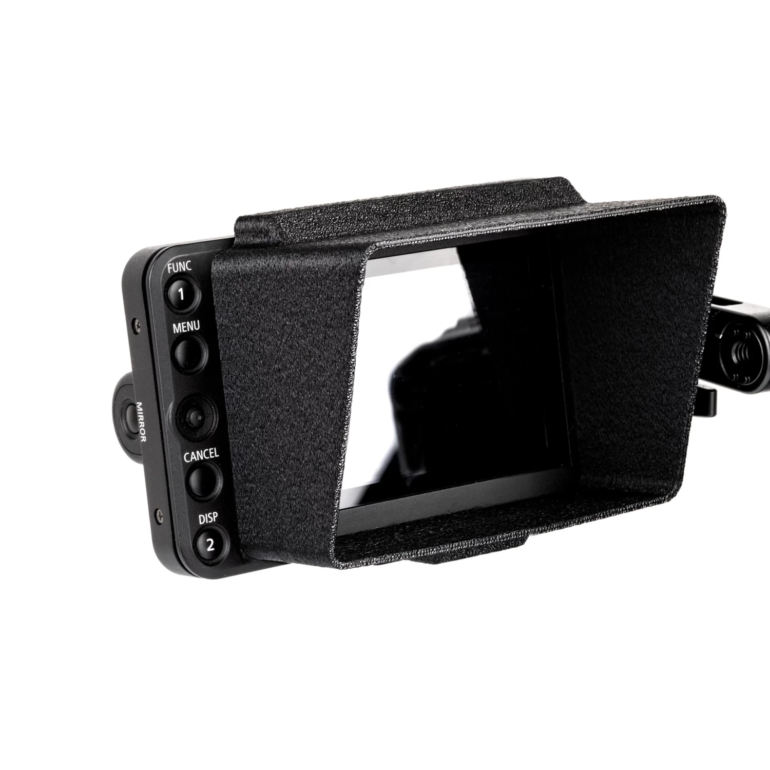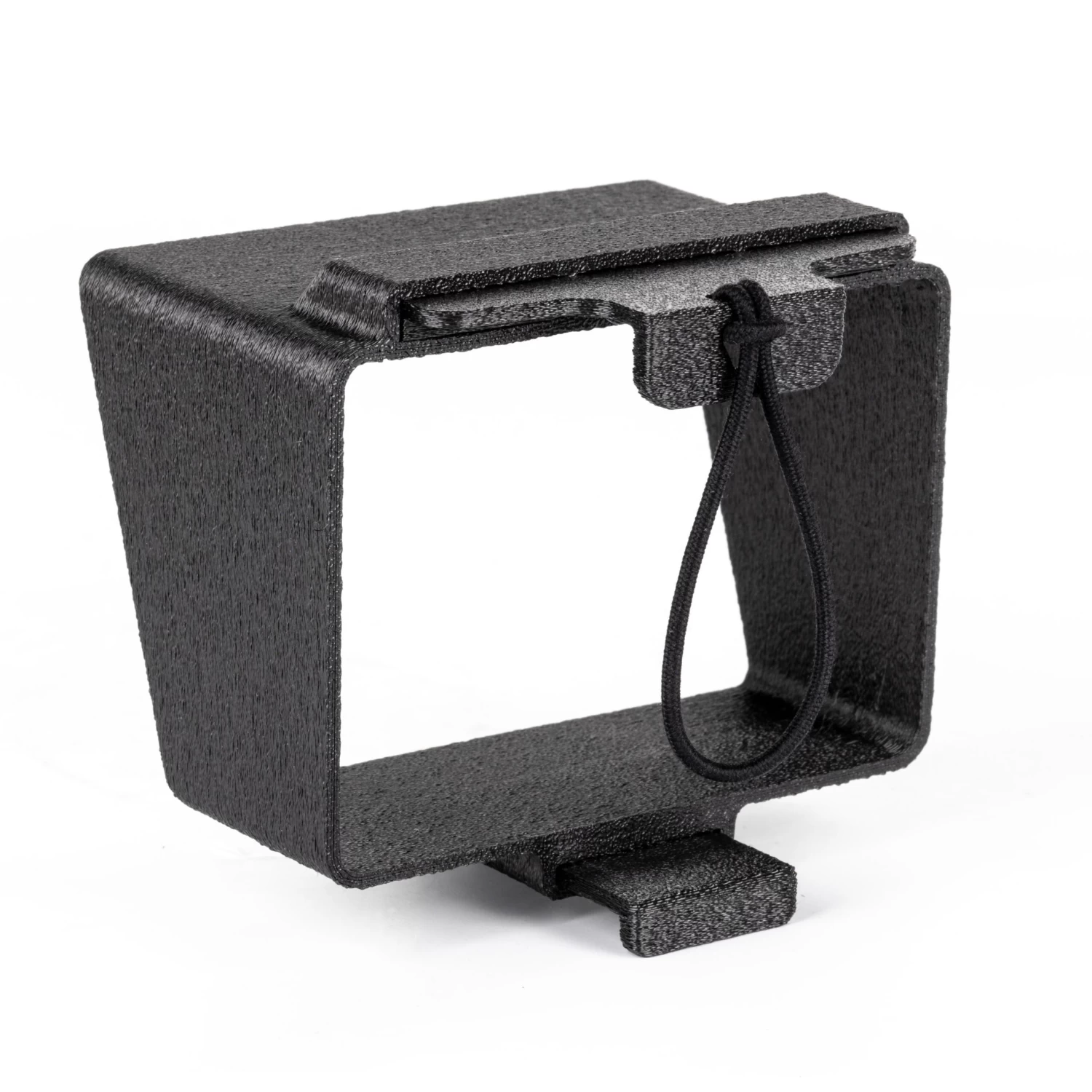 Enhance visibility of your monitor in bright daylight with the MID49 Monitor Sunshade for the Canon C400. This 3D-printed cover attaches to your monitor effortlessly without any tools. Crafted from flexible TPU, it is designed to be durable and resistant to breaking, even when packed into your camera bag.