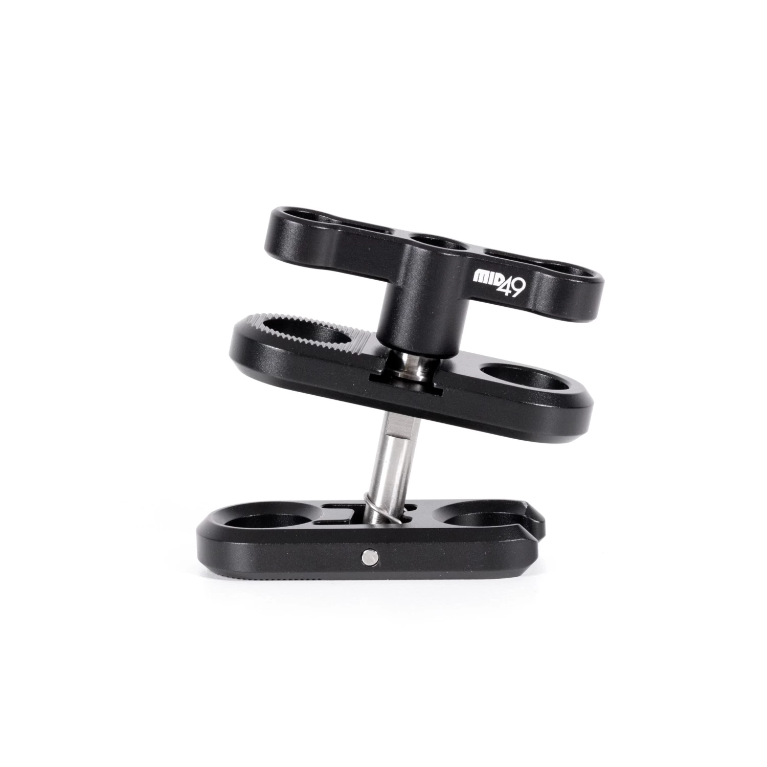 The MID49 Universal Speedball Clamp is compatible with 1″ speedball mounting systems commonly used in accessory arms from Mid49, Wooden Camera, Ultralight Control Systems, and other brands. It features a “Chip Clip” clamp design with a spring-loaded T-Bar for easy tightening or loosening. The spring mechanism allows you to adjust the T-Bar for optimal torque, enabling you to secure or release the clamp without having to rotate the T-Bar through its full 360° range. All parts of the clamp are permanently secured, so there’s no risk of losing components when it’s not in use.