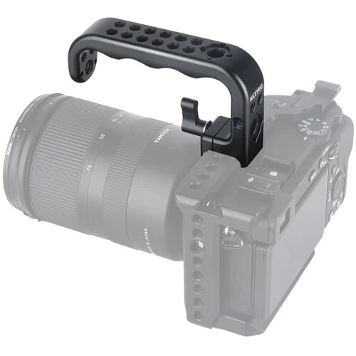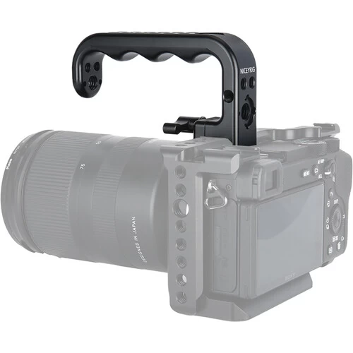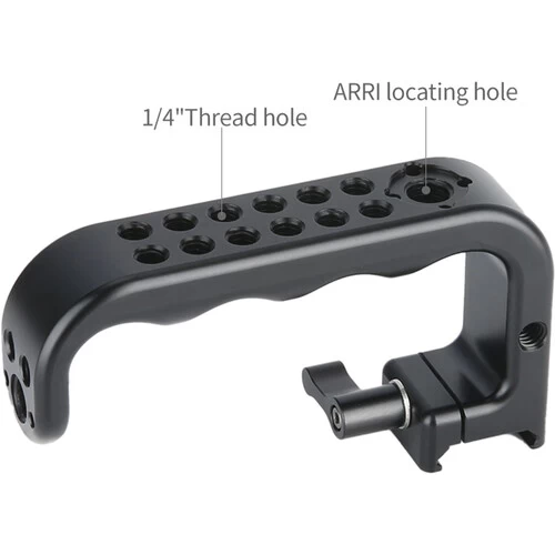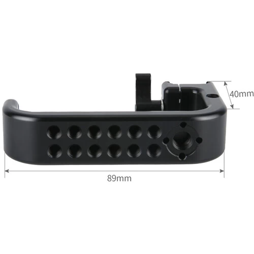 Niceyrig Nato top handle 393 is a small, sturdy, and very flexible mini pocket handle. The entire handle is vertically bent at 90°, and the front end is smooth that will not hit the monitor due to the attachment of accessories. The grip part is an 89mm long wavy curved surface, equipped with Arri positioning holes and 1/4” threaded holes on the top and both ends of the handle, providing same attach options to forward and backward direction installation, so that the handle can be flexibly adjusted according to the position of the slider.Curved design makes the grip fit the fingers greatly when grasping, and the hook-shaped tail effectively prevents accidental slipping due to sweat and fatigue.