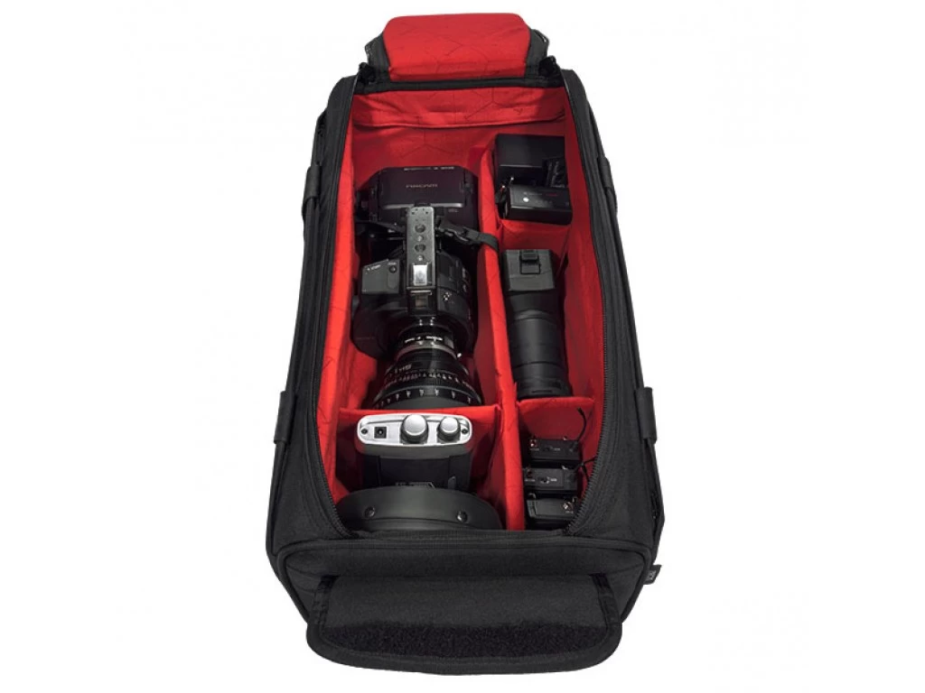 Designed to hold a medium video camera with accessories featuring extra wide opening top flap for quick and easy access.