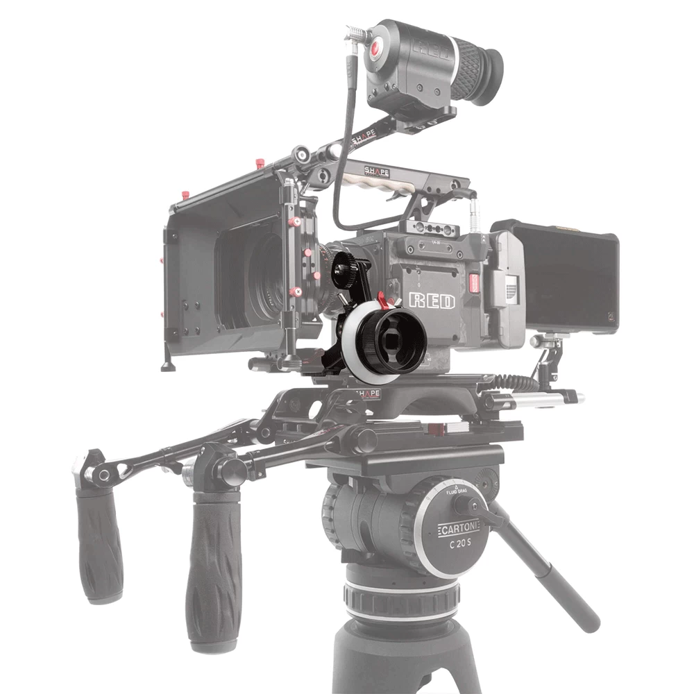 The SHAPE Follow Focus Pro mounts on 15mm rods and features an adjustable arm which puts the gear at the optimal position for the lens, no matter what the diameter is. The unit snaps onto 15mm rods, allowing for quick attachment, removal, and re-positioning. Two 0.8 pitch gears come included and give you a choice of either 28 teeth or 43 teeth – depending on the throw distance of the lens. Additional features include two adjustable hard stops, removable marking disc, and an industry standard accessory port for using optional whips and cranks.