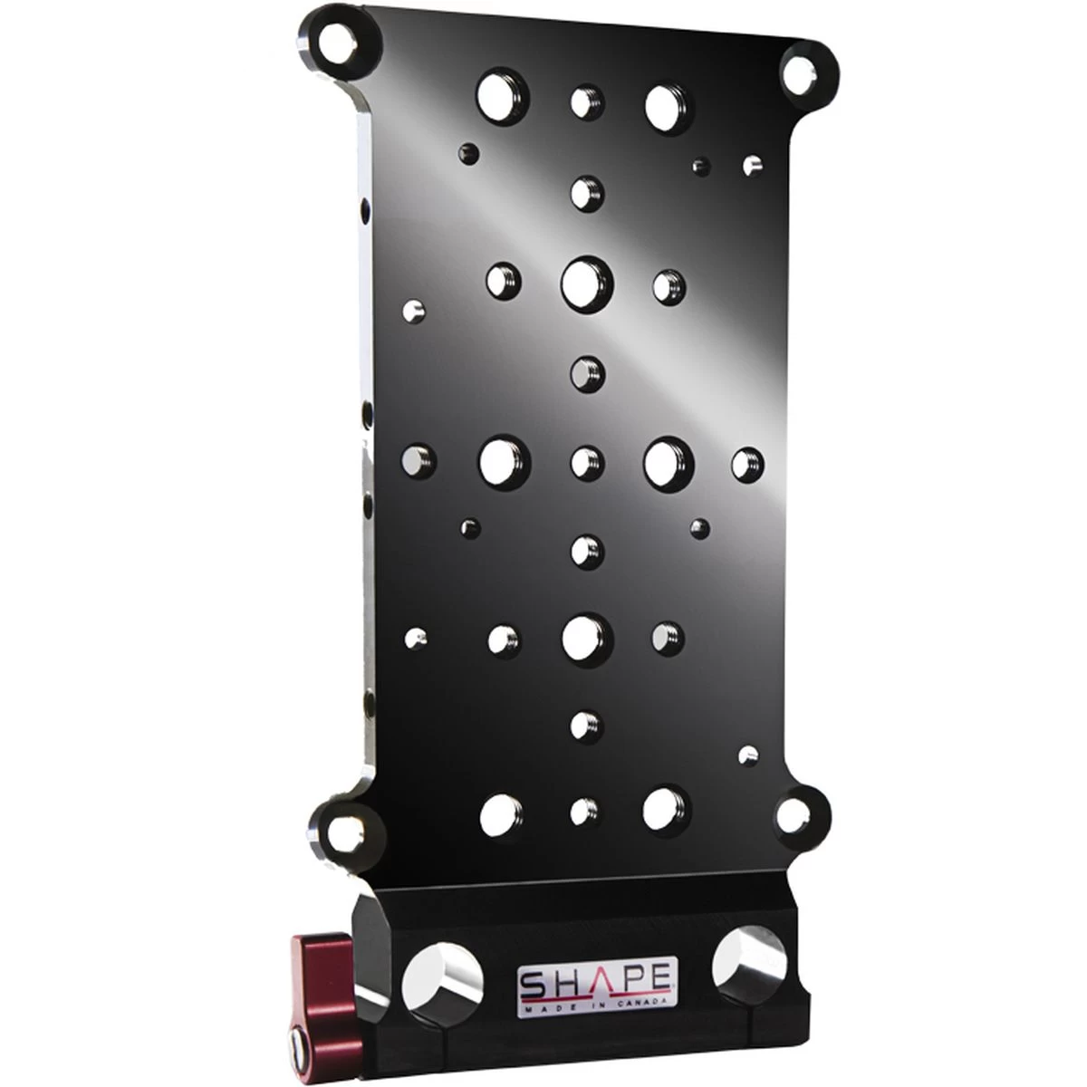 SHAPE’s CP33 Multi-Purpose Mounting Cheese Plate will let you add various accessories and devices to your camera rig. Just attach it to any two 15 mm rods on your rig, and you’ll have a total of thirty-three 1/4-“20, 3/8″-16, and 10/32″ threaded holes to work with.