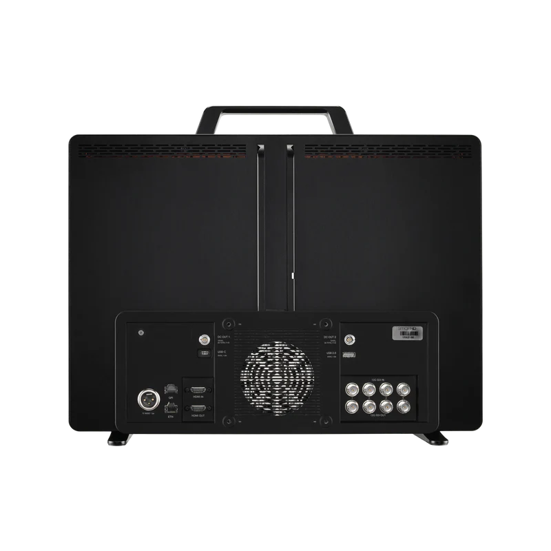 The Vision 17 features four 12G SDI inputs and outputs as well as one HDMI 2.0 input. The Unibody Smart Chassis offers a Dovetail Mounting Rail for battery and accessory mounting, interchangeable mounting points, and 2x 2-pin accessory power outputs. Hot-swappable dual inputs allow you to add on Gold Mount or V-Mount battery plate attachments.
