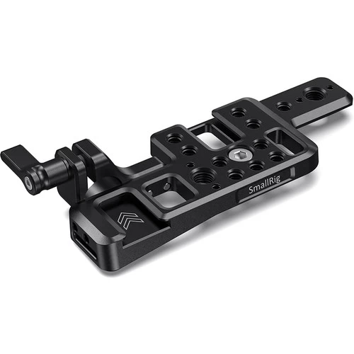 The SmallRig 2510 Lightweight Top Plate for BMPCC 4K & 6K firmly mounts to the camera using a 1/4”-20 screw and an anti-twist insertion to the strap hole on the left. It is an option for people who prefer to set up a lighter handheld rig or for better gimbal balance. The plate features a variety of mounting options including 1/4”-20 and 3/8”-16 holes, ARRI locating holes, two cold shoes and a built-in NATO rail, which makes it easy to attach light accessories like a small microphone, a 5 inches monitor, or a SSD. The included 15mm rod clamp is detachable and can mount on several selected places, so you can use a separately available 15mm rod to add more accessories.