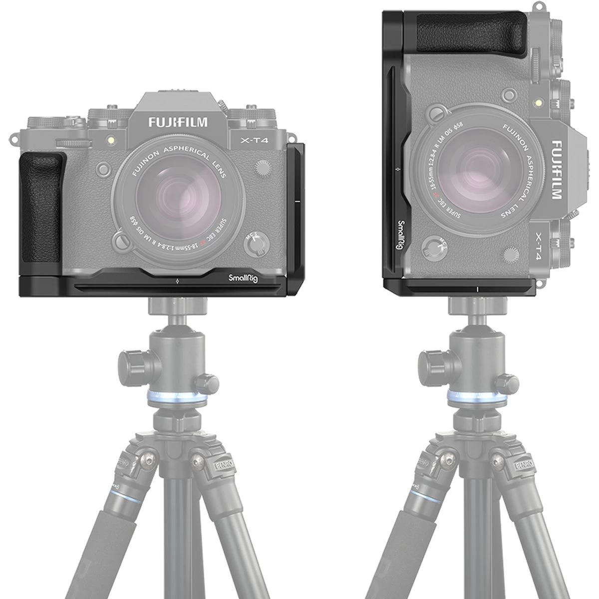 SmallRig L Bracket for FUJIFILM X-T4 Camera LCF2812 is modular designed with anti-twist flanges to keep the camera from twisting and provide a comfortable grip. Both the base plate and side plate are Arca-type compatible dovetails enable the camera to mount in a vertical or horizontal position. It secures to the bottom of the camera with a 1/4 screw and an anti-twist locating pin prevent twisting. The anti-slip silicone grip would make it easier to handhold the camera. Each axis features a sensor centering line to align the camera on a tripod head. The side plate features a 1/4″-20 threaded hole that allows for mounting a Magic Arm 2163 for accessories. The bottom features a 1/4″ -20 and 3/8 “-16 thread enables mounting a tripod plate. A flat head screwdriver stores on the bottom to secure the camera screw.