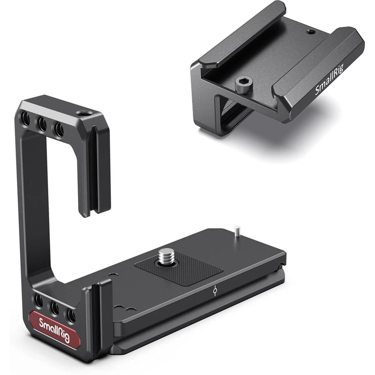 The Smallrig 3147 L-Bracket & Cold Shoe Mount Kit is made for the Canon EOS R5 and R6. It consists of the SmallRig 2976 L-Bracket and SmallRig 2736 Cold Shoe Mount.
