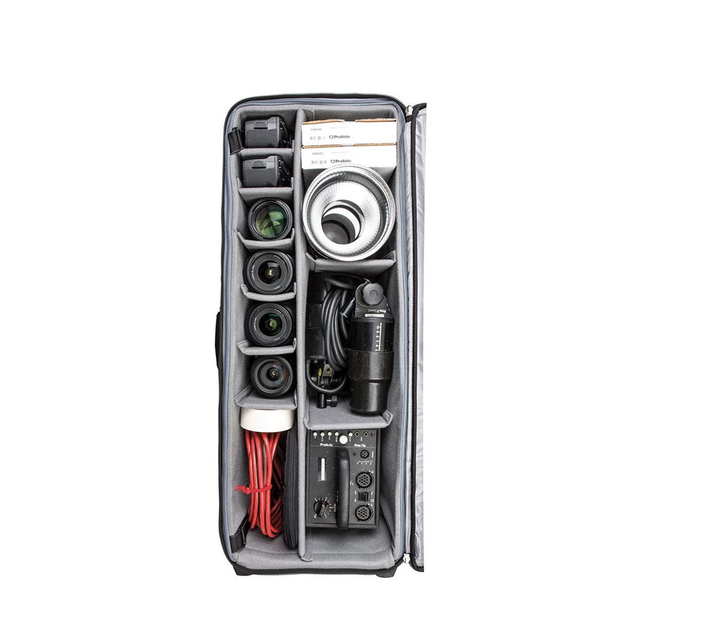 The Think Tank Production Manager 40 is a very spacious trolley that has been specially designed for transporting professional equipment. Production Manager 40 is the ideal tool for safely transporting a large amount of studio equipment. The design of the trolley offers space for multiple flash heads, power packs, monoblocks, softboxes and lampstands.