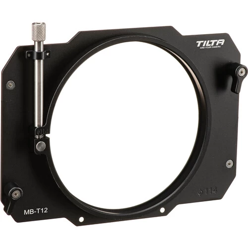 The 114mm Clamp-On Adapter for MB-T12 Matte Box from Tilta is used to attach the matte box to a lens with a 114mm front diameter. The adapter attaches to the lightweight 4 x 5.65″ matte box via keyhole slots and fastens to the lens using a screw-on clamp.
