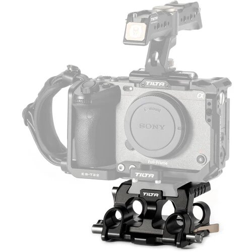 The black 15mm LWS Baseplate Type IV is compatible with Tilta full cages for RED KOMODO, Sony FX3, and Panasonic BGH1 cameras. Use this baseplate to add 15mm LWS rod support for accessories like a follow focus, matte box, or lens motor. The 15mm LWS Baseplate Type IV’s dovetail bottom slides onto a separately available Tilta-standard baseplate or ARRI-style baseplate when used with the separately available Tilta to ARRI adapter. The bottom of the baseplate also incorporates several 1/4″-20 and 3/8″-16 threads for mounting a quick release plate.