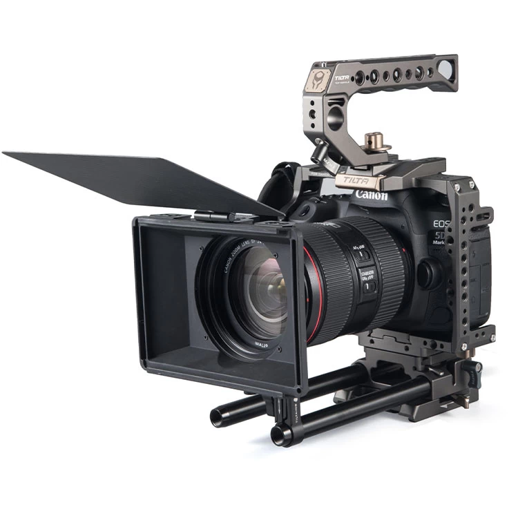 The Tiltaing Mini Matte Box is the perfect matte box for use with Tiltaing camera rigs. It is a super light-weight yet durable design that can accomodate screw-on or 4″x5.65″ filters. Pair it with the FF-T06 Mini Follow Focus and a Tiltaing camera cage.