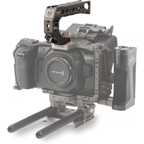 Carry and stabilize your Blackmagic Design Pocket Cinema Camera 4K with this lightweight Tilta gray Quick Release Top Handle from Tilta. The quick release handle’s features include two shoe mounts, a 15mm rod port, multiple 1/4″-20 and 3/8″-16 threads, and a 3/8″-16 thread with locating pins.