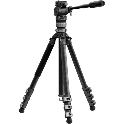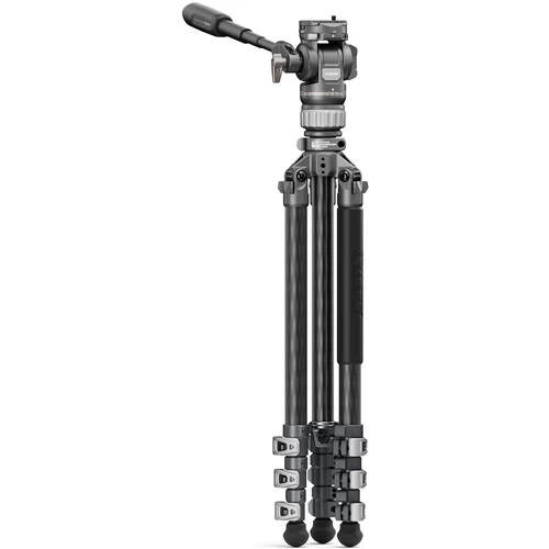 Designed with layered carbon fiber construction, the tripod legs offer a robust build with a maximum diameter of 25mm, supporting loads of up to 22 lb on their own while remaining lightweight and portable.