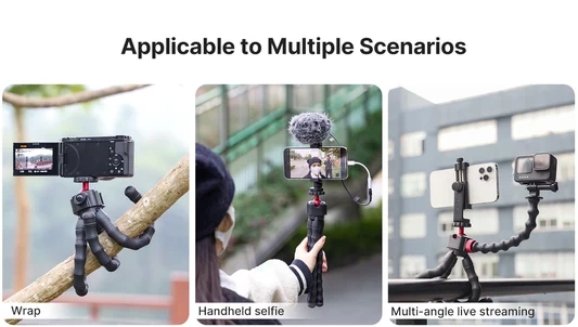 - Suitable for smartphone (tripod, dual cold shoe mount, lamp and microphone also suitable for compact camera, DSLR camera, video camera)