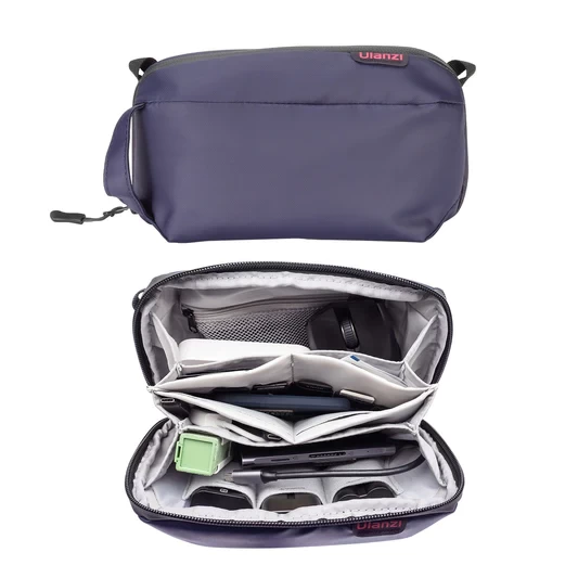 The Ulanzi SP-01 is a water-resistant organizer designed for vloggers, mobile journalists, photographers, and travelers. Its compact size allows for easy storage in a backpack, while the side handle and loops enable attachment to a bag handle for convenient carrying options. Made of water-resistant polyester, it ensures the protection of your accessories, even during rainy weather.