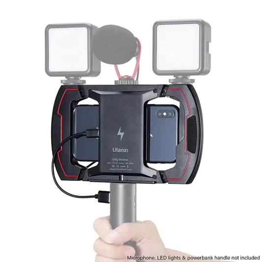 Connect the U-Rig Wireless to a powerbank or other energy source with the included USB-C cable. The Ulanzi U-Rig Wireless works with all smartphones and other devices that support wireless charging according to the universal Qi standard. The rig supports fast wireless charging up to 15W.