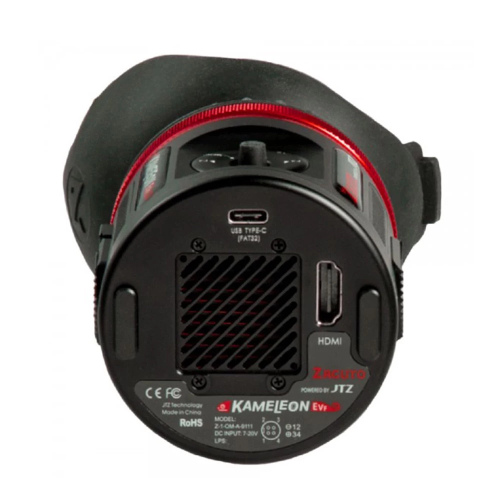 The Kameleon EVF Pro, powered by JTZ, is an electronic 0.71″ micro OLED viewfinder with HDMI and 3G-SDI input for numerous camera systems. The Kameleon EVF Pro is the successor of the Kameleon EVF and offers a revised interface with the software functions waveform and vectorscope. The new overlay allows a brighter, more colorful image and helps to prevent burn-in. The Kameleon EVF Pro supports video resolutions up to 4K DCI (4096 x 2160 pixels) via HDMI or Full HD (1920 x 1080 pixels) via HDMI and 3G-SDI. Numerous integrated software functions allow in-depth analysis of the image. The EVF is powered via the 4-pin Lemo 0B connector with 7 to 20 V DC. ARRI rosettes are available on both sides for mounting.